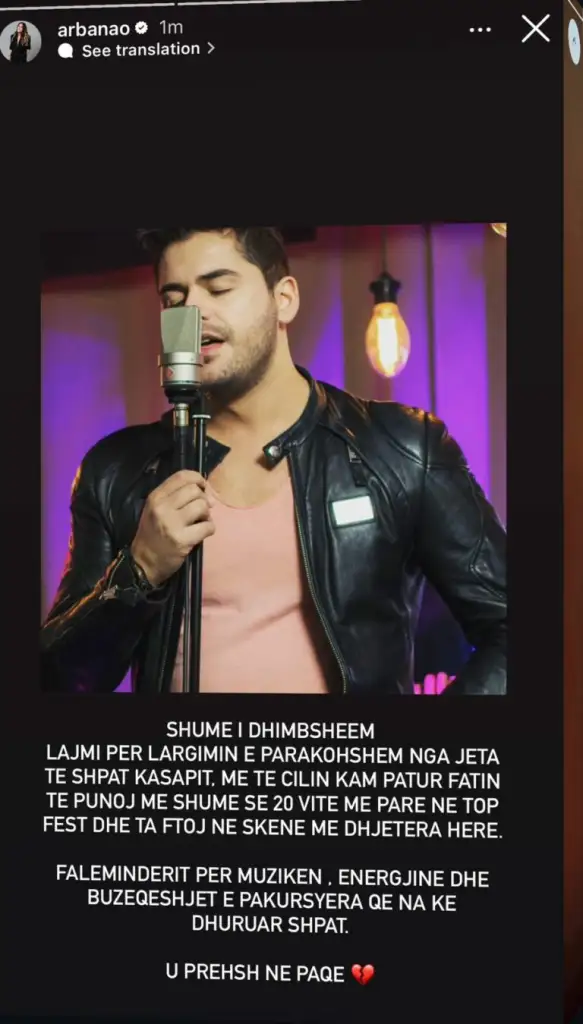 Arbana Osmani ka reaguar pas lajmit të trishtë për ndarjen nga jeta të këngëtarit të njohur Shpat Kasapi.